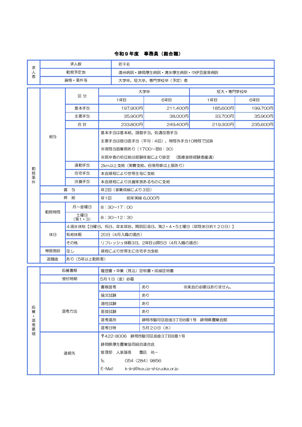 募集要項 令和9年度 事務員(総合職)募集