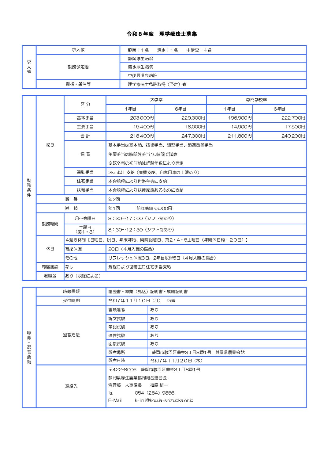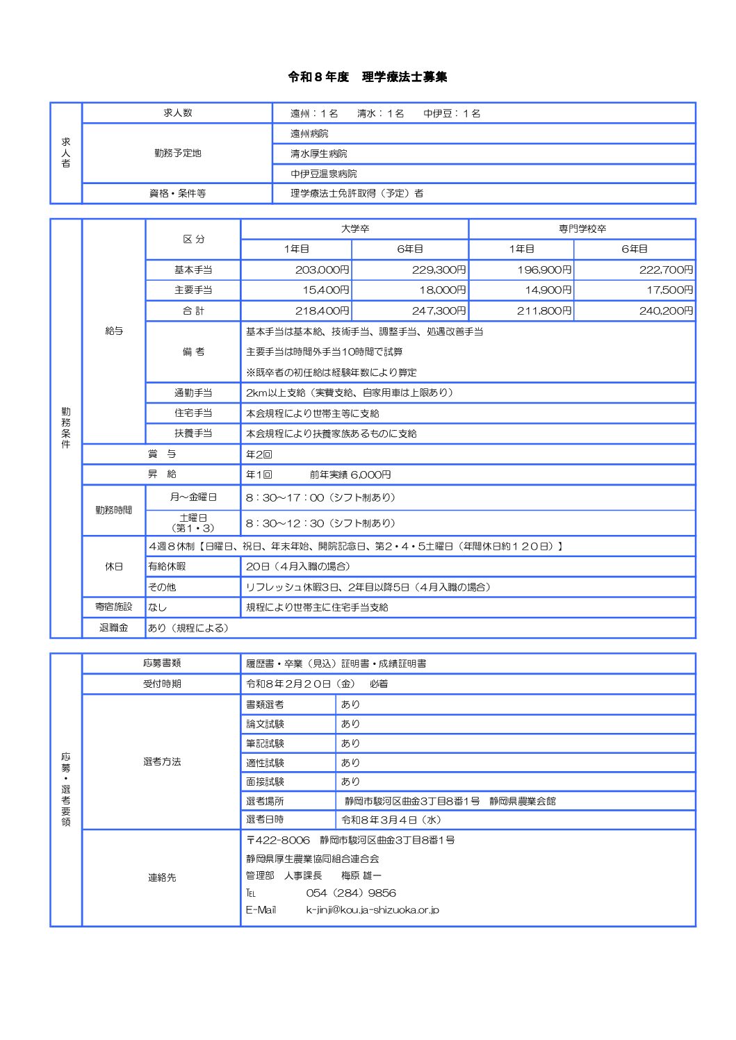 募集要項 令和8年度 理学療法士募集